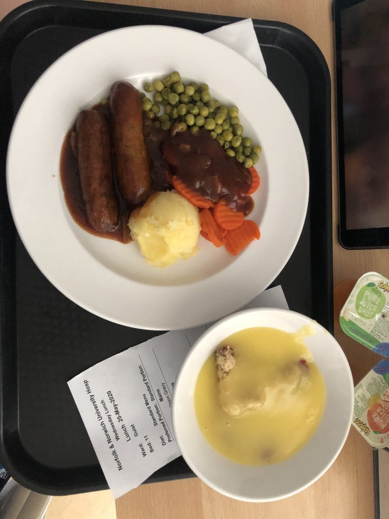 Food has certainly been interesting while in the hospital. I was initially put on a low fibre diet, but not really told what that entirely means. Now I do know the food groups and I have some idea of what fibre is and what it does BUT when faced with a number of choices of hospital food that I didn’t entirely know what they contained, it is pretty difficult to work out what I am doing. I had a lot of sausages and potatoes with something that they told me was vegetables (that was questionable). I was being given the option of some LUSH puddings though, Jam Sponge with custard, chocolate chip pudding and ice cream, I was totally in pudding heaven. After the first night of trying a chicken hotpot but it going cold because I was too busy having a toilet attack I went for what they call the finger food option, this usually revolved around sausages or chicken nuggets and some chips.